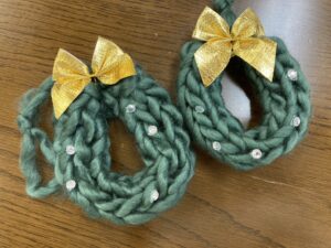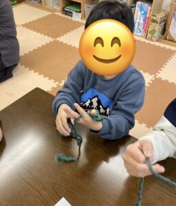 リースが早くできあがった人は、細めの糸での指編みにも挑戦!ぬいぐるみ用のマフラーを作る人もいましたよ☺️